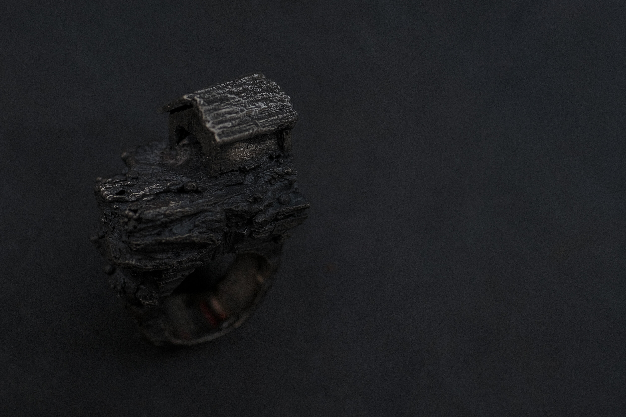 Unique organic rings lost cast from selected barks and organic material for raw and ethereal natural beauty. Sculpted from silver or brass, in tailored sizes. Each piece’s individual characteristics are at the artist discretion, in collaboration with the client. Includes artist consultation.